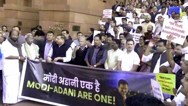 नई दिल्ली। विपक्षी गठबंधन ‘इंडियन नेशनल डेवलपमेंटल इंक्लूसिव अलायंस’ (इंडिया) के कई घटक दलों के सांसदों ने अदाणी समूह से जुड़े मुद्दे को लेकर मंगलवार को संसद परिसर में विरोध प्रदर्शन किया और मामले की जांच के लिए संयुक्त संसदीय समिति (जेपीसी) के गठन की मांग दोहराई। कांग्रेस, आम आदमी पार्टी, राष्ट्रीय जनता दल (राजद), शिवसेना (उबाठा), द्रमुक और वाम दलों सहित अन्य सांसदों ने प्रधानमंत्री नरेन्द्र मोदी के खिलाफ नारे लगाए और जवाबदेही की मांग की। लोकसभा में विपक्ष के नेता राहुल गांधी, आप के संजय सिंह, राजद की मीसा भारती और शिवसेना (यूबीटी) के अरविंद सावंत ने संसद भवन के ‘मकर द्वार’ पर आयोजित प्रदर्शन में भाग लिया।