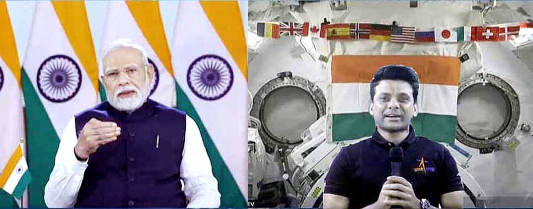 एजेंसी, नई दिल्ली।प्रधानमंत्री नरेन्द्र मोदी ने जब शनिवार को अंतरिक्ष यात्री शुभांशु शुक्ला से कहा कि उनकी अंतरिक्ष यात्रा भारत के गगनयान मिशन की दिशा में पहला कदम है, तब अंतरराष्ट्रीय अंतरिक्ष स्टेशन (आईएसएस) ‘भारत माता की जय’ के नारे से गूंज उठा। पृथ्वी की 400 किलोमीटर की ऊंचाई पर परिक्रमा कर रहे आईएसएस पर मौजूद शुक्ला से बातचीत करते हुए मोदी ने कहा कि आपकी ऐतिहासिक यात्रा सिर्फ अंतरिक्ष तक ही सीमित नहीं है, बल्कि यह विकसित भारत की दिशा में किये जा रहे प्रयासों को नयी गति प्रदान करेगी। शुक्ला ने कहा कि अंतरिक्ष स्टेशन की उनकी यात्रा न केवल व्यक्तिगत उपलब्धि है, बल्कि यह पूरे राष्ट्र की सामूहिक उपलब्धि है। शुक्ला ने अंतरिक्ष स्टेशन से वीडियो लिंक के माध्यम से प्रधानमंत्री को बताया, ‘‘जब मैंने पहली बार अंतरिक्ष से भारत को देखा, तो यह मानचित्र की तुलना कहीं अधिक बड़ा और भव्य दिखाई दिया।’’ शुक्ला ने कहा, ‘‘आप वास्तव में एकत्व की भावना महसूस कर सकते हैं, यहां कोई सीमा नहीं है, कोई रेखा नहीं है।