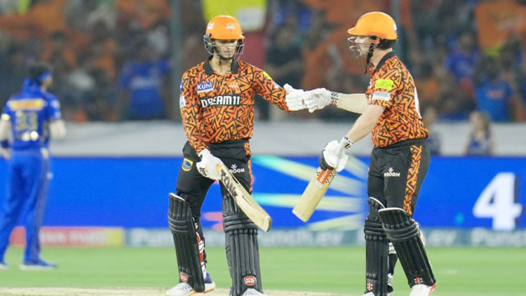 हेड ने 24 गेंद पर तीन सिक्स और 9 चौके की मदद से 62 रन बनाए। वहीं शर्मा ने 23 गेंद पर तीन चौके और सात सिक्स की मदद से 63 रनों की पारी खेली। इन दोनों के अलावा विकेट कीपर हेनरिक क्लासेन ने 34 गेंद पर चार चौके और सात सिक्स की मदद से नाबाद 80 रन बनाए। वहीं एडेन मार्करम ने 28 गेंद पर दो चौके और एक सिक्स की मदद से नाबाद 42 रन का योगदान दिया। दोनों ने चौथे विकेट के लिए शतकीय साझेदारी की। मुंबई के लिए कप्तान हार्दिक पांड्या, गेराल्ड कोएत्जी और पीयूष चावला ने एक – एक विकेट झटके।