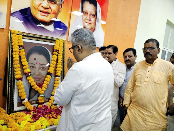 केंद्रीय मंत्री ने स्व. राजमाता सिंधिया जी की जयंती पर प्रदेश कार्यालय में पुष्पांजलि अर्पित की