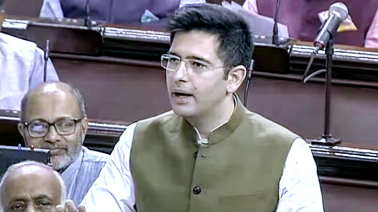 नई दिल्ली। राज्यसभा सांसद राघव चड्ढा ने बुधवार को राज्यसभा में कहा कि केंद्र सरकार ने 2022 तक हर व्यक्ति को मकान का वादा किया था। अब आम आदमियों की बात छोड़िए, सांसदों तक का घर छीना जा रहा है। दरअसल, राघव चड्ढा को राज्यसभा पूल से दिल्ली के पंडारा रोड पर टाइप 7 का बंगला आवंटित किया गया था। बाद में बंगले का आवंटन इस आधार पर रद्द कर दिया गया था कि पहली बार के सांसदों को केवल टाइप 6 बंगला दिया जाता है। हालांकि, अदालत द्वारा दिए गए स्टे के बाद राघव फिलहाल अपने पहले वाले बड़े बंगले में ही रह रहे हैं। राज्यसभा में देश की आर्थिक स्थिति पर चर्चा के दौरान राघव चड्ढा ने कहा कि आज मैं सरकार के वायदे बनाम वास्तविकता की सूची लेकर आया हूं। पहले वादा यह था कि भारत देश 5 ट्रिलियन डॉलर की इकोनॉमी बन जाएगा। आज सच्चाई यह है कि हम उस वादे से बहुत दूर हैं। सवाल यह नहीं है कि 5 ट्रिलियन डॉलर की इकोनामी भारत बनेगा कि नहीं बनेगा।