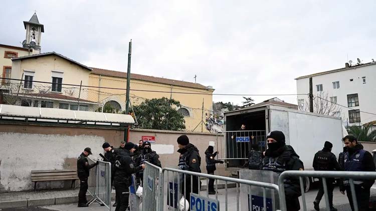 इस्तांबुल में दो नकाबपोश हमलावरों ने रविवार की प्रार्थना सभा के दौरान एक गिरजाघर पर हमला किया गया, जिसमें एक व्यक्ति की मौत हो गई। तुर्किये के अधिकारियों ने यह जानकारी दी। गृहमंत्री अली येरलिकाया के एक बयान के अनुसार, सशस्त्र हमलावरों ने स्थानीय समयानुसार सुबह 11 बजकर 40 मिनट पर सरियेर जिले के सैंटा मारिया गिरजाघर पर हमला किया। येरलिकाया ने कहा कि घटना की जांच शुरू कर दी गई है और हमलावरों को पकड़ने के प्रयास जारी हैं।