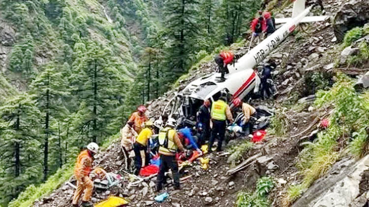 एजेंसी, उत्तरकाशी। उत्तराखंड के देहरादून से उत्तरकाशी जनपद अंतर्गत स्थित श्री गंगोत्री धाम की यात्रा पर श्रद्धालुओं को ले जा रहा एक हेलीकॉप्टर के गुरुवार को दुर्घटनाग्रस्त हो जाने से छह लोगों की मौत हो गयी। हेलीकाप्टर में पायलट सहित कुल सात लोग सवार थे। इनमें से छह लोगों के शव बरामद हुए हैं जबकि एक यात्री सुरक्षित है। मुख्यमंत्री पुष्कर सिंह धामी ने हादसे पर शोक व्यक्त किया है। राज्य आपदा मोचन बल (एसडीआरएफ) के सेनानायक (कमांडेंट) आईपीएस, अर्पण यदुवंशी ने बताया कि आज सुबह लगभग 08:50 बजे गंगनानी क्षेत्र में एक हेलीकॉप्टर दुर्घटनाग्रस्त होने की सूचना मिली। इस पर पोस्ट भटवाड़ी से मुख्य आरक्षी नवीन कुमार के नेतृत्व में टीम तत्काल रवाना की गई जबकि पोस्ट उजेली से उपनिरीक्षक पुष्कर जीना के नेतृत्व में दूसरी टीम रवाना हुई। उन्होंने बताया कि एसडीआरएफ टीम भटवाड़ी ने घटनास्थल पर पहुंचकर देखा कि हेलीकॉप्टर लगभग 200 से 250 मीटर गहरी खाई में गिरा हुआ है। उन्होंने बताया कि टीम ने घटनास्थल पर बेस बनाकर खाई में उतरने का रेस्क्यू कार्य प्रारंभ कर दिया है।