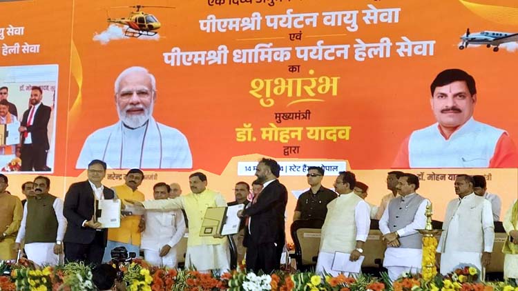 भोपाल। मुख्यमंत्री डां मोहन यादव ने गुरुवार को स्टेट हैंगर में अयोजित कार्यक्रम में पीएम श्री पर्यटन वायु सेवा एवं पीएम श्री धार्मिक पर्यटन हेली सेवा का शुभारंभ किया। इस योजना के तहत विभिन्न शहरों के लिए हवाई सेवा शुरू की जाएगी। शुरुआत में आठ सीटर वाले दो ट्विन इंजन एयरक्राफ्ट चलाए जाएंगे। प्रदेश के प्रमुख हवाई अड्डों के अलावा हवाई पट्टियों को भी इससे जोड़ा जाएगा। प्रारंभिक चरण में भोपाल, जबलपुर, रीवा, खजुराहो, उज्जैन और पमचढ़ी को धार्मिक पर्यटन हवाई सेवा से जोड़ा जाएगा। इसका दायरा बढ़ा कर आने वाले समय में पर्यटकों की मांग के अनुसार अन्य शहरों को जोड़ा जाएगा।
