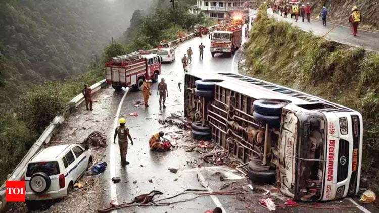 पालनपुर। गुजरात के बनासकांठा जिले में सोमवार को सुबह अंबाजी मंदिर से तीर्थयात्रियों को लेकर जा रही एक बस के पलट जाने से उसमें सवार 4 लोगों की मौत हो गई और लगभग 30 अन्य घायल हो गए। पुलिस ने यह जानकारी दी। बस करीब 50 तीर्थयात्रियों को लेकर खेड़ा जिले के कठलाल जा रही थी और यात्री अंबाजी मंदिर में पूजा-अर्चना करने के बाद वापस लौट रहे थे। दांता पुलिस थाने के एक अधिकारी ने बताया कि अंबाजी से लौटते समय बस पहाड़ी सड़क पर थी और तभी दांता तालुका के त्रिशूलिया घाट पर चालक ने वाहन पर से नियंत्रण खो दिया, जिससे बस पटल गई। पुलिस अधीक्षक अक्षय राज ने बताया, ‘‘दुर्घटना में चार लोगों की मौत हो गई।’’ उन्होंने बताया कि नौ यात्री गंभीर रूप से घायल हो गए, जबकि 25 अन्य को मामूली चोटें आईं, घायलों को उपचार के लिए अस्पताल ले जाया गया।
