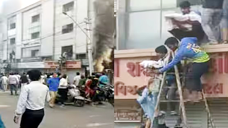 गुजरात के भावनगर में कॉम्प्लेक्स में आग, 19 का रेस्क्यू : बिल्डिंग में 4 अस्पताल, फर्स्ट फ्लोर की खिड़की से बच्चों को चादर में लपेटकर निकाला