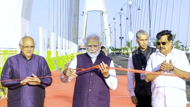 अहमदाबाद। लोकसभा चुनाव 2024 से पहले प्रधानमंत्री नरेंद्र मोदी दो दिवसीय गुजरात दौरे पर हैं। इस दौरान प्रधानमंत्री नरेन्द्र मोदी ने अरब सागर में बेयट द्वारका द्वीप को मुख्य भूमि ओखा से जोड़ने वाले देश के सबसे लंबे केबल-आधारित पुल ‘सुदर्शन सेतु’ का गुजरात के देवभूमि द्वारका जिले में रविवार को उद्घाटन किया। इससे पहले पीएम मोदी ने द्वारका के मंदिर में पूजा अर्चना की और पुल को जनता को समर्पित किया। सुदर्शन सेतु को देश का सबसे लंबा सिग्नेचर ब्रिज कहा जा रहा है, जिसका पीएम मोदी ने आज उद्घाटन किया है। मोदी ने अपने दिन की शुरुआत बेयट द्वारका में भगवान श्री कृष्ण मंदिर में पूजा-अर्चना करके की। इसके बाद उन्होंने ‘सुदर्शन सेतु’ नामक चार लेन के केबल पुल का उद्घाटन किया। अद्वितीय डिजाइन से बने इस सेतु के दोनों ओर श्रीमद्भगवद गीता के श्लोकों और भगवान कृष्ण की छवियों से सुसज्जित एक पैदलपथ है।
