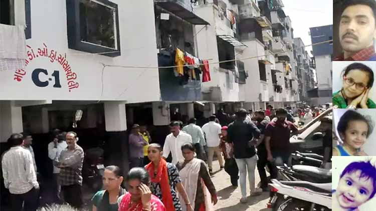 वहीं परिवार के अन्य सदस्यों के जहर खाने की आशंका जताई जा रही है। घटना सूरत के पालनपुर इलाके की है। पुलिस के मुताबिक यह घटना शनिवार को सूरत के अडाजण इलाके में हुई। जिसमें चार वयस्कों और तीन बच्चों सहित परिवार के सात सदस्यों ने सामूहिक आत्महत्या कर ली है। घटना अडाजण के पालनपुर पाटिया स्थित सिद्धेश्वर अपार्टमेंट में हुई।