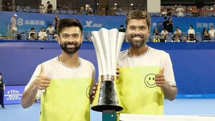 नई दिल्ली। भारत के जीवन नेदुनचेझियान और उनके जोड़ीदार विजय सुंदर प्रशांत ने मंगलवार को हांगझोउ ओपन का चैम्पियन बनने के साथ पुरुष युगल में जोड़ी के रूप में अपना पहला एटीपी खिताब जीता, जबकि युकी भांबरी और फ्रांस के उनके जोड़ीदार अल्बानो ओलिवेटी मंगलवार को चेंगदू ओपन में उपविजेता रहे। जीवन और विजय की गैरवरीय भारतीय जोड़ी ने एक घंटे और 49 मिनट तक चले मुकाबले में कॉन्स्टेंटिन फ्रांत्जेन और हेंड्रिक जेबेंस की गैर वरीयता प्राप्त जर्मन जोड़ी को 4-6, 7-6(5), 10-7 से शिकस्त दी।