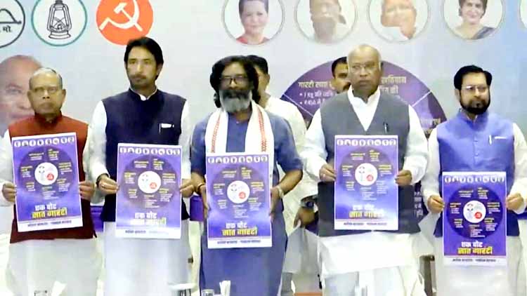 झारखंड : इंडिया ब्लॉक का 7 गारंटियों वाला घोषणा पत्र जारी, 10 लाख नौकरी-रोजगार और सरना धर्मकोड का वादा