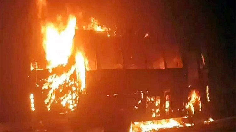 दिल्ली-जयपुर हाईवे पर स्लीपर बस में आग लगने से 3 लोगों की मौत