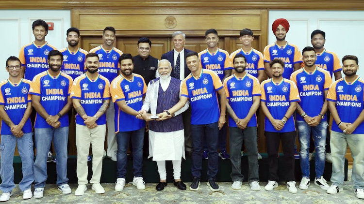 खिलाड़ी केक काटने के बाद अपने कमरों में चले गए। यह सब मीडिया की अपेक्षित हलचल के बीच हुआ। कुछ देर बाद वे प्रधानमंत्री नरेंद्र मोदी से मिलने उनके आवास के लिए रवाना हो गए। खिलाड़ियों का पूरे दिन का कार्यक्रम काफी व्यस्त है। होटल लौटने से पहले भारतीय दल ने प्रधानमंत्री के 7, लोक कल्याण मार्ग स्थित आवास पर करीब दो घंटे बिताए। इससे पहले हवाई अड्डे पर आव्रजन औपचारिकताएं पूरी करने के बाद दल के सदस्य एक-एक करके या दो-दो करके बाहर निकले। थके हुए लेकिन उत्साहित खिलाड़ियों ने प्रतीक्षा कर रहे प्रशंसकों का हाथ हिलाकर और गर्मजोशी से मुस्कुराते हुए अभिवादन किया। फाइनल में डेविड मिलर का शानदार कैच पकड़कर भारत की जीत में अहम भूमिका निभाने वाले सूर्यकुमार नारों का जवाब देने में सबसे अधिक उत्साहित थे। भयानक कार दुर्घटना में घायल होने के बाद टी20 विश्व कप के साथ अंतरराष्ट्रीय क्रिकेट में वापसी करने वाले विकेटकीपर बल्लेबाज ऋषभ पंत ने प्रशंसकों को सलाम किया जबकि तेज गेंदबाज मोहम्मद सिराज ने उनकी ओर ‘फ्लाइंग किस’ दिए।