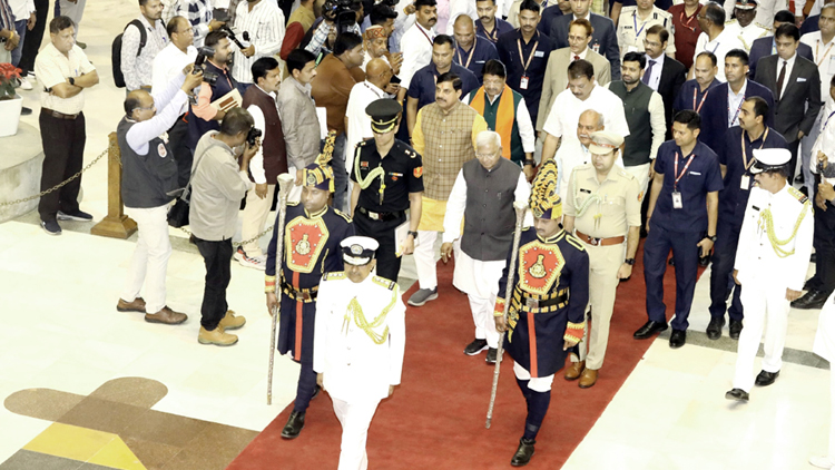 भोपाल| मध्यप्रदेश विधान सभा के बजट सत्र, 2025 हेतु विधान सभा में माननीय राज्यपाल मंगुभाई पटेल पधारे. विधानसभा अध्यक्ष नरेंद्र सिंह तोमर, माननीय मुख्यमंत्री डॉ मोहन यादव, नेता प्रतिपक्ष उमंग सिंघार एवं संसदीय कार्य मंत्री कैलाश विजयवर्गीय ने उनकी अगवानी की तथा पुष्पगुच्छ भेंट कर उनका आत्मीय स्वागत किया। तत्पश्चात् माननीय राज्यपाल महोदय ने सदन में अभिभाषण का वाचन किया।