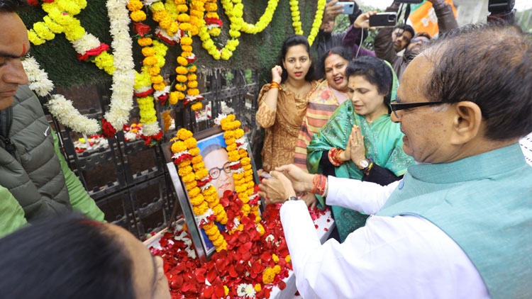 मुख्यमंत्री शिवराज सिंह चौहान ने बोर्ड ऑफिस स्थित भारत रत्न डॉ. भीमराव अंबेडकर की प्रतिमा पर श्रद्धासुमन अर्पित किए। मुख्यमंत्री ने बाबा साहेब अंबेडकर के चरणों में प्रणाम करते हुए कहा कि बाबा साहब ने भारत का संविधान लिखा और हम संविधान को प्रणाम करते हैं। उन्होंने गरीबों, दलितों और शोषितों की जिंदगी बदलने के लिए लगातार संघर्ष किया।