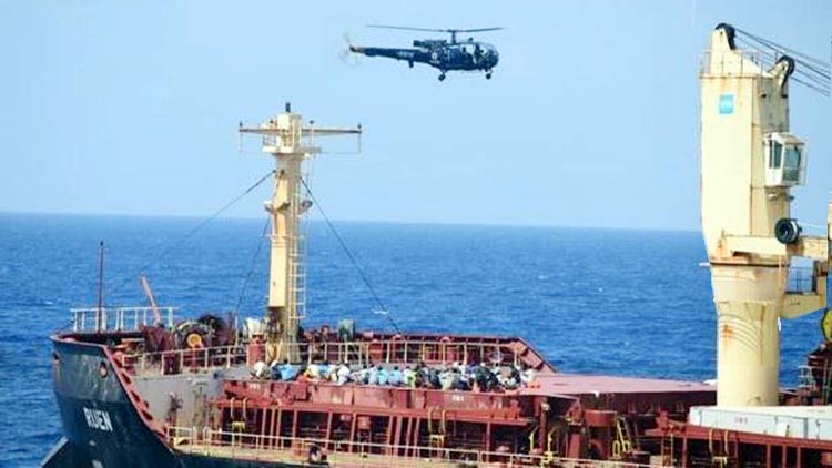 नौसेना ने बताया कि एमवी रुएन का सोमालियाई जलदस्युओं ने 14 दिसंबर को अपहरण कर लिया था। पहले के बयान में नौ सेना ने बताया था कि जहाज से भारतीय युद्धपोत पर गोलीबारी की गई और भारतीय जहाज की ओर से आत्म रक्षा में और नौ वहन तथा नाविकों को जलदस्युओं के खतरे से बचाने के लिए आवश्यक न्यूतनम बल के साथ समुद्री डकैती से निपटने के वा स्ते अंतरराष्ट्रीय कानून के अनुसार कार्रवाई की गई। नौसेना ने कहा, ‘‘जहाज पर सवार समुद्री डाकुओं से आत्मसमर्पण करने तथा उनके द्वारा बंधक बनाए जहाज तथा नागरिक को रिहा करने को कहा गया।’’ नौसेना ने बताया कि शुक्रवार को एक भार तीय युद्धपोत और लंबी दूरी के समुद्री गश्ती विमान ने बांग्लादेश के एक मालवाहक जहाज का अपहरण किए जाने के बाद उसकी मदद की। उसने बताया कि सशस्त्र समुद्री डाकुओं द्वारा बंधक बनाए गए चालक दल के सदस्यों की सुरक्षा सुनिश्चित की गयी और भारतीय नौसेना के युद्धपोत ने सोमालिया के जल क्षेत्र में पहुंचने तक जहाज के करीब अपनी उपस्थिति बनाए रखी। पिछले कुछ हफ्तों में भारतीय नौसेना ने पश्चिमी हिंद महासागर में कई व्यापारी जहाजों पर हमलों के बाद उनकी सहायता की है।