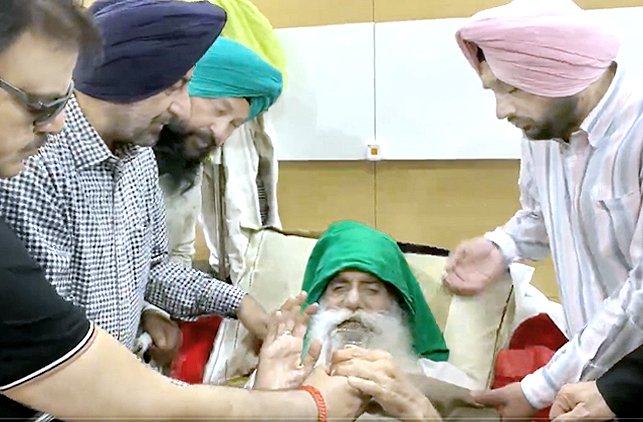 एजेंसी, नई दिल्ली। पंजाब सरकार ने सुप्रीम कोर्ट को बताया कि किसानों की विभिन्न मांगों को लेकर अनिश्चितकालीन भूख हड़ताल कर रहे किसान नेता जगजीत सिंह डल्लेवाल ने शुक्रवार की सुबह पानी पीकर अनशन समाप्त कर दिया। पंजाब के महाधिवक्ता गुरमिंदर सिंह ने न्यायमूर्ति सूर्यकांत और न्यायमूर्ति एन कोटिश्वर सिंह की पीठ से कहा कि उन्होंने खनौरी और शंभू बॉर्डर पर प्रदर्शनकारी किसानों को तितर-बितर कर दिया है और सभी अवरुद्ध सड़कों एवं राजमार्गों को यातायात के लिए खोल दिया गया है। सुप्रीम कोर्ट ने डल्लेवाल के प्रयासों की सराहना करते हुए कहा कि वह एक सच्चे किसान नेता हैं जिनका कोई राजनीतिक एजेंडा नहीं है। पीठ ने कहा, ‘‘हम जानते हैं कि कुछ लोग किसानों की शिकायतों का निपटारा नहीं चाहते। हम स्थिति से अनभिज्ञ नहीं हैं। हम सब कुछ जानते हैं।’’ पीठ ने पंजाब और हरियाणा सरकार से जमीनी हालात के बारे में स्थिति रिपोर्ट दाखिल करने को कहा।