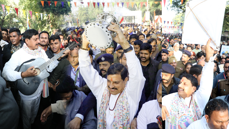 प्रधानमंत्री नरेन्द्र मोदी ने विश्व में देश की एक अलग पहचान बनाई है। उन्होंने कहा कि नेतृत्व सही हो तो देश निश्चित ही आगे बढ़ता है। आयोजन जिला प्रशासन, नगर पालिक निगम, उज्जैन विकास प्राधिकरण अन्य शासकीय विभागों एवं सामाजिक संस्थाओं के सहयोग से सम्पन्न हुआ। मुख्यमंत्री डॉ. मोहन यादव ने प्रात: तरणताल चौराहे से कोठी तक पैदल चल कर उत्सवधर्मियों का उत्साहवर्धन कर सबका अभिवादन स्वीकार करते हुए उनका हौसला बढ़ाया। मुख्यमंत्री डॉ. मोहन यादव का तरणताल चौराहे से कोठी तक सड़क के दोनों ओर लगे विभिन्न स्टालों के आयोजकों एवं उत्सवधर्मियों आत्मीय स्वागत अभिनंदन किया।