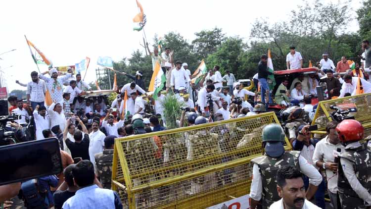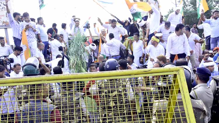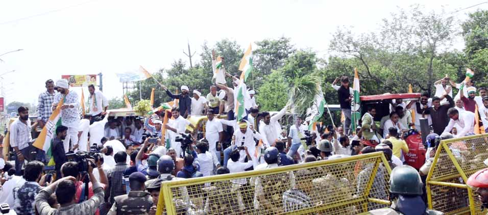 प्रदेश कांग्रेस अध्यक्ष जीतू पटवारी ने चेतावनी दी कि अगर सरकार ने राज्य में 6,000 रुपये प्रति क्विंटल की दर पर किसानों का सोयाबीन नहीं खरीदा, तो पहले मंडियां बंद कराई जाएंगी और इसके बाद किसान अगले सत्र में विधानसभा परिसर के भी तर घुसकर अपनी मांग पूरी कराएंगे। इससे पहले, शहर के रीजनल पार्क चौराहे पर बड़ी तादाद में तैनात पुलिस बल ने बैरिकेड लगाकर कांग्रेस की ट्रैक्टर रैली को एक घंटे से भी ज्यादा समय तक रोके रखा जिससे इस चौराहे पर यातायात बुरी तरह जाम हो गया। इस दौरान ‘‘जय जवान, जय किसान’’ के नारों के बीच दिग्विजय सिंह और जीतू पटवारी ट्रैक्टर पर बैठे रहे।