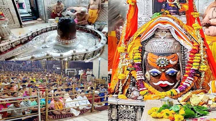 उज्जैन। मध्यप्रदेश के उज्जैन में स्थित देश के 12 ज्योतिर्लिंगों में प्रमुख भगवान महाकालेश्वर मंदिर में आज श्रावण के प्रथम सोमवार पर श्रद्धालुओं की भारी भीड़ उमड़ पड़ी। मंदिर प्रबंध समिति के अनुसार बीती रात 2 बजकर 30 मिनट पर भगवान के मंदिर के पट आम श्रद्धालुओं के लिए खोल दिए गए थे। इसके बाद से श्रद्धालुओं का ताता लगना शुरू हो गया।