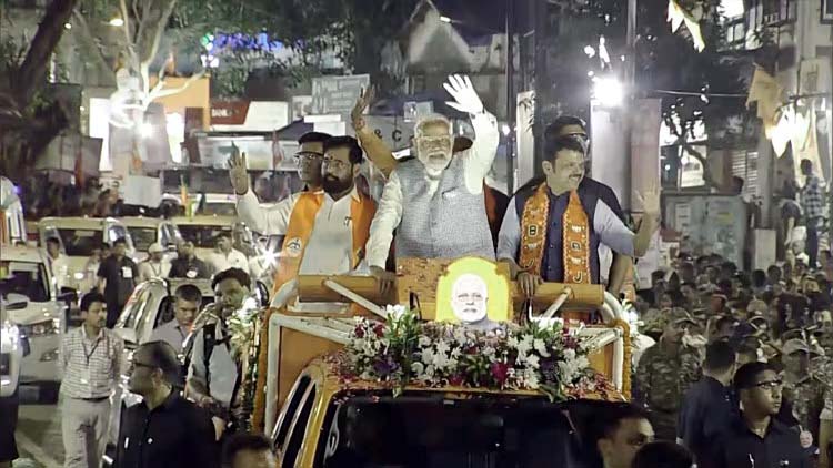मुंबई में पीएम मोदी ने शुरू किया रोड शो, मुमं शिंदे व डिप्टी मुमं फडणवीस मौजूद