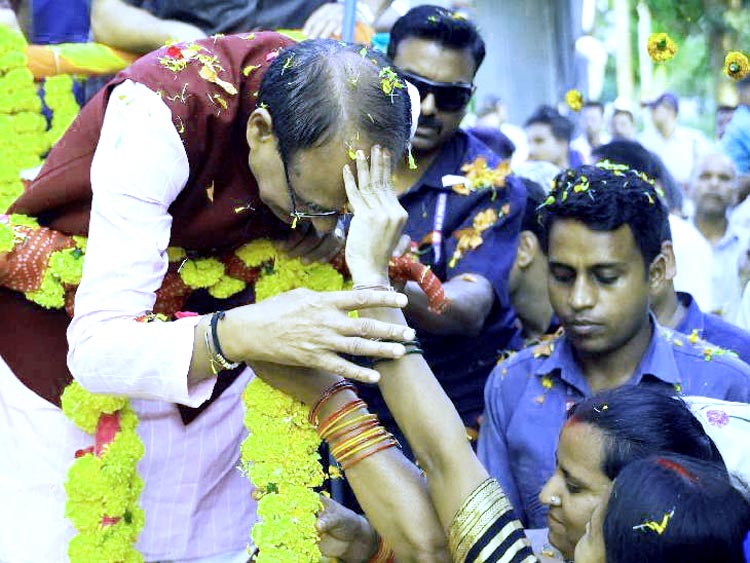 भोपाल| मुख्यमंत्री शिवराज सिंह चौहान ने लगातार तीसरे दिन भोपाल में रोड शो किया। उन्होंने शुक्रवार को गोविंदपुरा विधानसभा सीट से भाजपा प्रत्याशी कृष्णा गौर के समर्थन में जनसंपर्क और सभा की। इस दौरान लोगों ने फूलों की वर्षा कर मुख्यमंत्री की अगवानी की। सीएम चौहान ने रोड शो की शुरुआत शिवनगर से की और फिर बाग सेवनिया में भी लोगों के बीच पहुंचकर जनसंपर्क और सभा की। इस दौरान चौहान के साथ बीजेपी की प्रत्याशी और विधायक कृष्णा गौर, बीजेपी जिला अध्यक्ष सुमित पचौरी भी मौजूद रहीं। रोड शो के दौरान स्थानीय रहवासियों ने सीएम चौहान का मामा…. मामा पुकार कर अभिवादन किया और उन पर पुष्प वर्षा की। रोड शो के दौरान कई स्थानों पर सीएम का तिलक कर आरती भी उतारी गई।