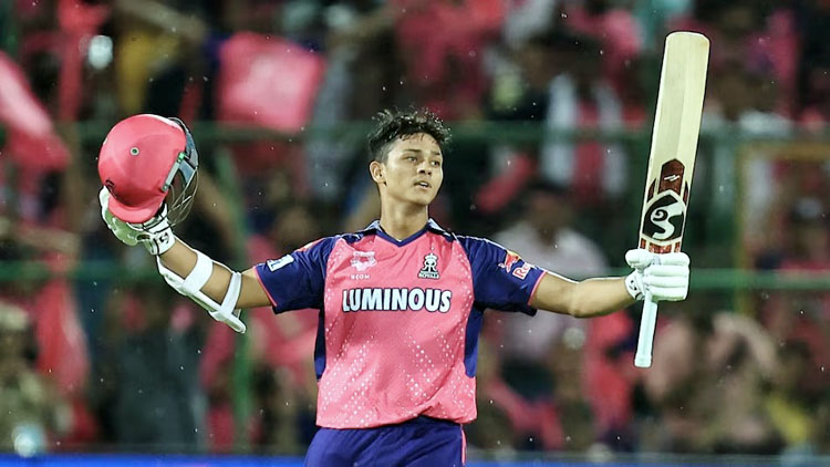जयपुर। सोमवार को राजस्थान रायल्स के युवा सलामी बल्लेबाज यशस्वी जायसवाल की आईपीएल में शानदार फॉर्म देखने को मिली। उन्होंने मुंबई इंडियंस के खिलाफ सवाई मानसिंह स्टेडियम में शानदार नाबाद शतक उड़ाया। जयसवाल शतक के दम पर राजस्थान रायल्स ने अपनी शानदार फार्म की बदौलत मुंबई इंडियंस को 9 विकेट से रौंद दिया। 180 रनों के लख्य का पीछा करने उतरी राजस्थान की टीम की बल्लेबाजी ने शानदार प्रदर्शन किया। यशस्वी जयस्वाल ने सलामी बल्लेबाज जोस बटलर के रूप में केवल एक विकेट गंवाया। जोस बटलर मात्र 25 गेंद पर 35 रन बनाकर आउट हो गए। उसके बाद जायसवाल और कप्तान संजू सैमसन ने शानदार पारी खेली। कप्तान संजू सैमसन ने जायसवाल के साथ मिलकर मैच फिनिश किया। संजू सैमसन ने 28 गेंद पर 38 रनों की बेहतरीन पारी खेली। यशस्वी जासवाल ने इस आईपीएल सीजन में पहला शतक बनाया। उन्होंने 60 गेंद पर नाबाद 104 रन की पारी खेली। जायसवाल ने अपनी पारी में 9 चौके और 7 छक्के लगाए। मैच के अंत में जायसवाल ने विजयी चौका लगाया।