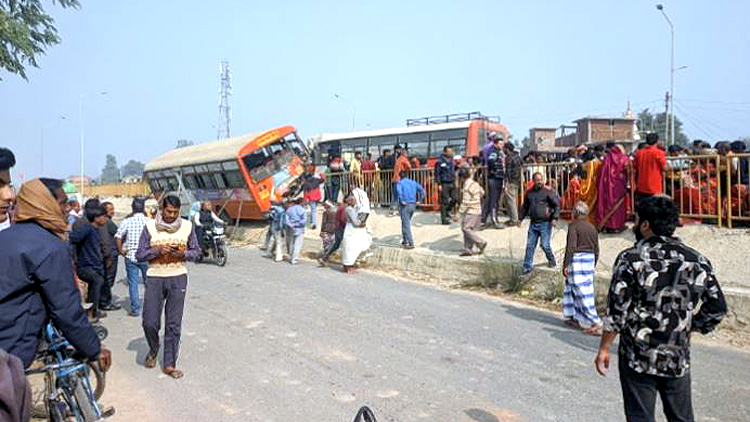 गोरखपुर| जिले के गगहा थाना क्षेत्र में प्रयागराज महाकुंभ से श्रद्धालुओं को लेकर आ रही परिवहन निगम की दो बसों का, ओवर टेक करने के प्रयास में एक्सीडेंट हो गया. इसमें 27 यात्री बुरी तरह घायल हो गए. घायलों का इलाज नजदीकी अस्पताल से लेकर जिला अस्पताल में चल रहा है. घायलों की हालत खतरे से बाहर बताई जा रही है लेकिन, इन्हें चोट काफी गंभीर आई है. घायलों में ज्यादातर यात्री नेपाल के रहने वाले हैं. वहीं गोरखपुर- कुशीनगर के भी यात्री इस बस में सवार होकर गोरखपुर आ रहे थे. यह हादसा दिन के करीब 12:30 बजे, गगहा क्षेत्र के मंगलपुर बाजार के पास हुआ. इस संबंध में एसपी साउथ जितेंद्र कुमार ने बताया कि बसों की टक्कर में जो भी यात्री घायल हुए उन्हें पुलिस और स्थानीय लोगों की मदद से इलाज के लिए अस्पतालों में पहुंचाया गया है. 17 यात्री जो गंभीर हैं उन्हें मेडिकल कॉलेज और जिला अस्पताल के लिए गोरखपुर भेजा गया है.