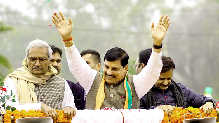 मुख्यमंत्री डॉ. यादव का रीवा की जनता ने पुष्प वर्षा कर किया अभिनंदन