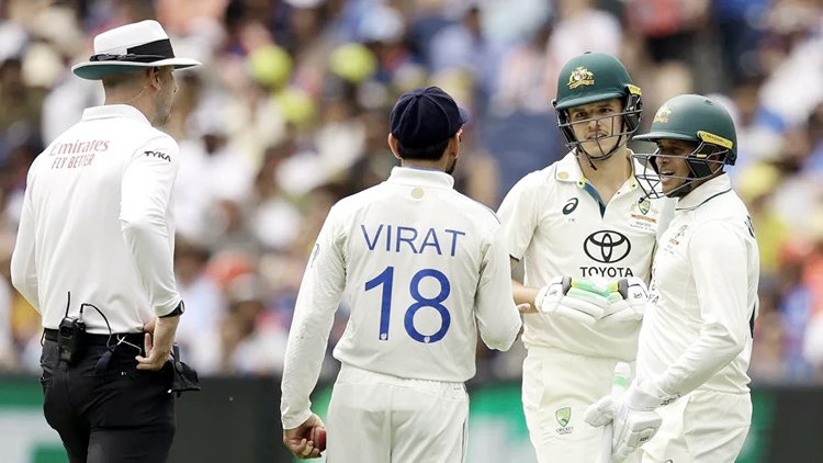 मेलबर्न। अंतरराष्ट्रीय क्रिकेट परिषद (आईसीसी) ने भारत के स्टार बल्लेबाज विराट कोहली पर ऑस्ट्रेलिया के खिलाफ चौथे टेस्ट मैच के पहले दिन गुरुवार को यहां मेजबान टीम के युवा बल्लेबाज सैम कोंस्टास से भिड़ने के कारण मैच फीस का 20 प्रतिशत जुर्माना लगाया है और उनके खाते में एक डिमेरिट अंक भी जोड़ा गया है। मेलबर्न क्रिकेट ग्राउंड पर खेले जा रहे हैं इस मैच के 10वें ओवर में यह घटना घटी जब कोहली और 19 वर्षीय सलामी बल्लेबाज कोंस्टास ने आपस में कंधे टकराए और इसके बाद संक्षिप्त बहस भी की। आईसीसी ने अपनी वेबसाइट पर जारी बयान में कहा, आईसीसी आचार संहिता का अनुच्छेद 2.12 किसी खिलाड़ी, खिलाड़ी के सहयोगी स्टाफ, अंपायर, मैच रेफरी या किसी अन्य व्यक्ति (अंतरराष्ट्रीय मैच के दौरान एक दर्शक सहित) के साथ अनुचित शारीरिक संपर्क से संबंधित है। इसमें कहा गया, ‘‘किसी औपचारिक सुनवाई की जरूरत नहीं पड़ी क्योंकि कोहली ने मैच रेफरी एंडी पाइक्रॉफ्ट द्वारा दी गई सजा को स्वीकार कर लिया। मैदानी अंपायर जोएल विल्सन और माइकल गफ, तीसरे अंपायर शरफुद्दौला इब्ने शाहिद और चौथे अंपायर शॉन क्रेग ने आरोप लगाए।