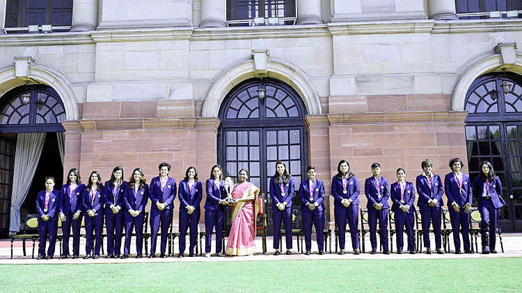 इस समारोह में भारतीय महिला क्रिकेट खिलाड़ियों ने ट्रॉफी लेकर राष्ट्रपति मुर्मू के साथ फोटो खिंचवाई। इस दौरान कप्तान हरमनप्रीत कौर ने राष्ट्रपति को खिलाड़ियों के हस्ताक्षर वाली टी-शर्ट भेंट की। इस अवसर पर राष्ट्रपति मुर्मू ने कहा, “आप युवा पीढ़ी, विशेषकर लड़कियों के लिए रोल मॉडल बन गई हैं, इससे वह जीवन में आगे बढ़ने के लिए प्रेरित होंगी।” राष्ट्रपति ने भारतीय महिला क्रिकेट टीम की हर सदस्य को बधाई दी और कहा कि उन्होंने क्रिकेट विश्व कप जीतकर इतिहास रच दिया है। देश और विदेश में लाखों भारतीय इस जीत का जश्न मना रहे हैं। उन्होंने कहा कि यह टीम भारत को दिखाती है। वे अलग-अलग क्षेत्रों, अलग-अलग सामाजिक पृष्ठभूमि, अलग-अलग परिस्थितियों का प्रतिनिधित्व करती हैं। लेकिन वे एक टीम हैं – भारत। यह टीम भारत को उसके सबसे अच्छे रूप में दिखाती है।
