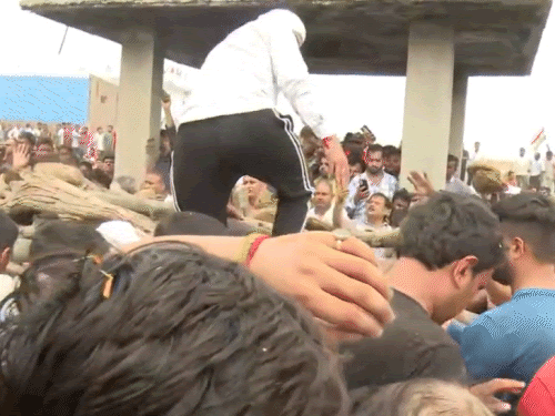 पानीपत| कश्मीर के अनंतनाग में 13 सितंबर को आतंकियों से मुठभेड़ में शहीद मेजर आशीष धौंचक (36) का अंतिम संस्कार उनके पैतृक गांव बिंझौल में हुआ। उन्हें चचेरे भाई मेजर विकास ने मुखाग्नि दी। इससे पहले सिख रेजीमेंट के जवानों ने उन्हें गन सैल्यूट दिया। शहीद मेजर की अंतिम यात्रा पानीपत TDI सिटी से 14 किमी दूर उनके गांव बिंझौल पहुंची। यात्रा के साथ एक किलोमीटर लंबे काफिले में करीब 10 हजार लोग शामिल हुए। सड़क के दोनों तरफ खड़े लोगों ने आशीष की पार्थिव देह पर फूल बरसाकर उन्हें विदा किया। अंतिम यात्रा के साथ शहीद मेजर आशीष की बहनें और मां भी बिंझौल आईं। मां पूरे रास्ते हाथ जोड़े रहीं, जबकि बहन भाई को सैल्यूट करती रही। जब भास्कर ने उनसे बात की तो उन्होंने सिर्फ इतना कहा- “मेरा भाई हमारा और देश का गर्व है।”