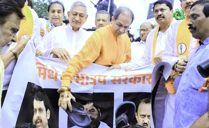 मुंबई| महाराष्ट्र में विपक्षी गठबंधन महाविकास आघाडी (सनो) के नेताओं ने महाराष्ट्र के सिंधुदुर्ग जिले में छत्रपति शिवाजी महाराज की प्रतिमा ढहने के विरोध में रविवार को दक्षिण मुंबई में प्रतिष्ठित हुतात्मा चौक से ‘गेटवे ऑफ इंडिया’ तक मार्च निकाला। विपक्ष के प्रदर्शन को देखते हुए मुंबई में सुरक्षा के कड़े इंतजाम किए गए हैं। गेटवे ऑफ इंडिया पर टूरिस्ट के आने-जाने पर भी आज रोक लगाई गई है। मुंबई से करीब 480 किलोमीटर दूर मालवण तहसील के राजकोट किले में 17वीं सदी के मराठा योद्धा की प्रतिमा 26 अगस्त को गिर गई थी। इसका अनावरण प्रधानमंत्री नरेन्द्र मोदी ने चार दिसंबर 2023 को नौसेना दिवस के अवसर पर किया था। राष्ट्रवादी कांग्रेस पार्टी-शरदचंद्र पवार (राकांपा-एसपी) सुप्रीमो शरद पवार, शिवसेना-उद्धव बालासाहेब ठाकरे (शिवसेना-यूबीटी) नेता उद्धव ठाकरे, कांग्रेस की राज्य इकाई के प्रमुख नाना पटोले और पार्टी की मुंबई इकाई की प्रमुख वर्षा गायकवाड़ ने ‘संयुक्त महाराष्ट्र’ आंदोलन में शहीद हुए लोगों की याद में बने हुतात्मा चौक पर पुष्पांजलि अर्पित कर विरोध मार्च की शुरुआत की। आज विरोध मार्च के लिए लोग चप्पल लेकर सड़कों पर निकले थे। हालांकि मुंबई पुलिस ने इस प्रदर्शन की अनुमति नहीं दी है। पर्यटकों के लिए गेटवे ऑफ इंडिया बंद रखा गया है।