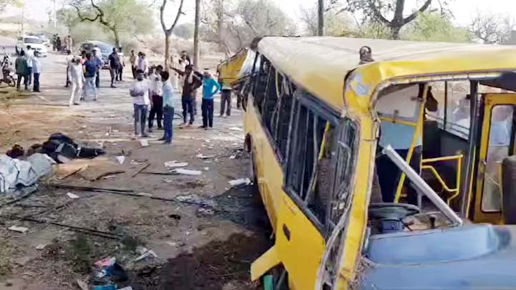 हरियाणा के महेंद्रगढ़ में स्कूली बस पलटने से 6 बच्चों की मौत, कई घायल