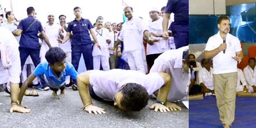 राहुल गांधी ने जिलाध्यक्षों के सामने जुजुत्सु अभ्यास किया। इसके बाद उन्होंने जिलाध्यक्षों को बताया कि आपको जमीन पर अपनी पकड़ मजबूत होनी होगी। यदि जमीन छोड़ी, तो पकड़ भी कमजोर होगी। साथ ही उन्होंने मन संतुलित रखने के लिए कहा कि अगर कोई आदमी आपको मार रहा है तो उसकी ओर ध्यान मत दीजिए। बल्कि उसे गले लगाइए। आपकी जमीन पर इतनी मजबूत पकड़ हो कि आपका ध्यान भटकाने की कोशिश करने वाला असफल हो जाए। इधर, रविवार को मीडिया से बातचीत में लोकसभा नेता प्रतिपक्ष राहुल गांधी ने कहा कि मेन मुद्दा वोट चोरी है। जिसे अब विशेष गहन पुनरीक्षण (SIR) से कवर किया जा रहा है। उन्होंने प्रेस कॉन्फ्रेंस करके डिटेल में वोट चोरी का खुलासा करने की बाद कही। आगे राहुल गांधी ने कहा कि प्रधानमंत्री नरेंद्र मोदी, अमित शाह और मुख्य चुनाव आयुक्त ज्ञानेश कुमार इसमें सीधे तौर पर शामिल हैं। पार्टनरशिप बनाकर ये लोग भारत माता को नुकसान पहुंचा रहे हैं।